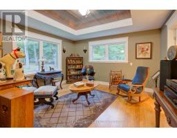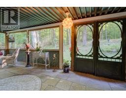 Stunning custom-built home in a serene and private setting in Otty Woods Waterfront Community. This beautifully crafted home is impressive everywhere you look and has been meticulously designed and maintained. When entering the home, the workmanship, floor plan and décor make an immediate impression. The large foyer welcomes you to the home and opens up into a large open-concept kitchen with stone countertops and spacious dining area with access to the rear deck. The main level continues with a cozy living room, a master bedroom with an ensuite (currently being used as a sitting room) and two further bedrooms and another full bathroom down the hall. The lower level is set up with two further bedrooms, a 3-pc bathroom and a large recreation room with an amazing stone fireplace and a cold room. This level has access to a unique and peaceful screened-in room that is the perfect place to relax and unwind and enjoy the picturesque views of the forest behind the house. The property has a detached garage with a large finished loft that is currently being used as a studio. Attached to the garage is another section that houses a wood boiler that ensures solid heating throughout the winter months. The house is also heated by a propane furnace for an easy heating option. The house is serviced by a drilled well and septic system and the grounds are beautifully landscaped with perennial gardens, mature trees, pathways through the woods and more. This property has access to Otty Lake via a community waterfront property with a dock, swim raft, a gazebo with picnic tables and chairs, an area to store kayaks, canoes, etc as well as walking trails. Prime location just south of Perth and Smiths Falls. Absolutely everything about this property is exceptional the home, landscaping and location! Must be seen to be appreciated! (id:28880)