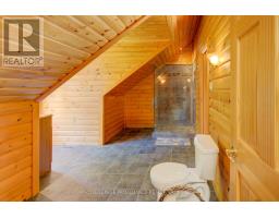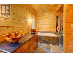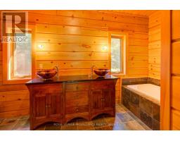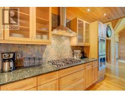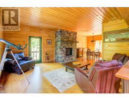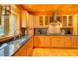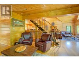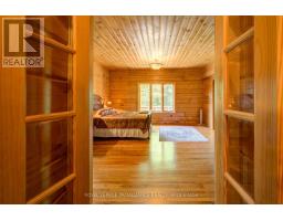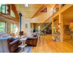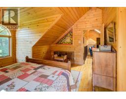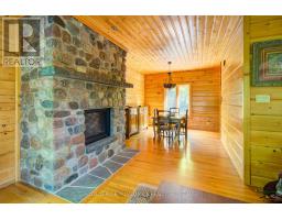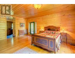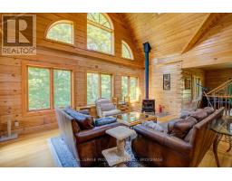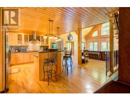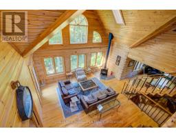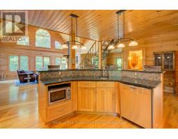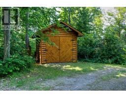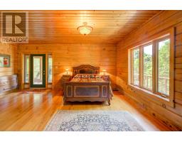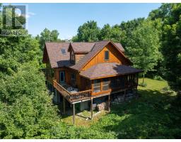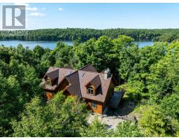 Hidden gem on Little Crosby Lake just north of Westport! This stately colonial concept log home sits immersed in trees on 6 acres of land with total privacy. Upon entering the home, you will find yourself in awe looking at the grand living room with beautiful windows and large custom hickory kitchen with a 6 burner Viking cooktop, double wall ovens, Miele dishwasher, granite counter tops and amazing locally sourced red oak flooring. This level has a family room with a granite boulder fireplace, an attached dining area, a 2pc powder room and a welcoming foyer. The primary bedroom has an attached 5pc ensuite with whirlpool tub and access to a large bronze-screened porch which is a wonderful place for your morning coffee. Walking up the custom oak and steel frame stairs to the second level, you will see a large loft area, two bedrooms and a 3pc bathroom. There is a Jotul propane stove in one of the bedrooms and all bedrooms have birch flooring. The walkout basement has 9' high ceilings, a workshop, craft room, undeveloped recreation room with a woodstove, cold room and laundry room. There are two doors that access the yard from this level. The house is serviced by a drilled well and septic system and includes a water softener, heat pump, 200 amp electrical service and two 40-gallon electric water heaters. Wandering down the path toward the lake, you will pass a 2-bedroom cedar bunkie with plenty of space for guests. Continuing along the path to the lake brings you to the dock area with a natural shoreline that is a perfect spot for your boat. Along the shoreline to the west is a lovely platform for sitting and enjoying deeper swimming waterfront. Looping back toward the house, there is a catwalk section on the path bringing you back home. There is a large garden shed behind the house - perfect for all your yard equipment. This stunning property is located just 10 minutes north of Westport with easy access to all amenities and unique dining and shopping options. (id:28880)