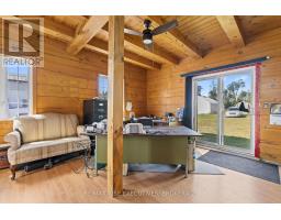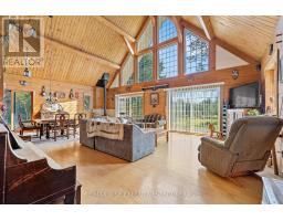 A Rare Find. Look no further! This 3000 +/- Handcrafted log and timber-frame home is situated on 5+/- acres just south of Elgin. Craftsmanship at its finest. Enter into the large open concept 20 x 30 great room with cathedral ceilings, exposed timbers, loft and plenty of windows for natural light. Upstairs the bedrooms are spacious, (see floor plans) with the Primary bedroom having a 3 piece ensuite, cathedral ceiling's and a 6' x 12' covered deck. There is a main floor office area or potential bedroom. Outside you will love sitting on the 10 x 52 covered porch enjoying your surroundings. Radiant in floor heat (main floor/upper bath) and a woodstove, well you can sense the coziness. A 26 x 32 workshop and 30 x 50 coverall (new 2023) allow for plenty of storage and hobby activities. This property has huge potential. Great exposure for that home based business you have always dreamed of. Move into the house and walk to work across the driveway. Zoned Residential/Commercial so a lot of business opportunities Close to all village amenities and area lakes where boating and fishing are favorite pastimes. Call to arrange your private viewing and discuss this great opportunity. Mid way between Toronto and Montreal. (id:28880)