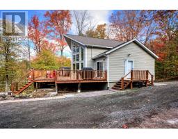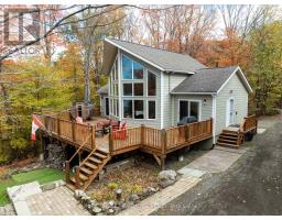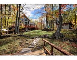 Beautiful and stunning 2 bedroom Viceroy home located on one of the most desirable lakes in our region. This home is located in Bayside Woods Cooperative, a lakeside property that has just under 5 acres of common land and 1100 feet of beautiful southwest facing shoreline. This home sits on an ICF poured concrete foundation and has access to the side yard through a double door that also allows for storage of yard equipment and perhaps some water toys. There is a finished recreation room with an electric fireplace, workshop and utility area. The main level of this home has an eat-in style kitchen, a laundry room, an inviting living room with cathedral ceilings, wood burning fireplace and floor to ceiling windows looking out over the lake. There are two bedrooms, 3pc. ensuite bathroom, another full 4pc. bathroom and stairs to the loft area. This area is currently set up as a sleeping area for extra family but could also be an amazing home office. The large cedar deck overlooks the land that has a slight slope down to the clear, inviting waters of Bobs Lake with a beach area that gradually gets into deeper water. There is a large storage shed and plenty of space for outdoor activities. The house is serviced by a septic system and drilled well and has fibre optic internet. The coop offers a convenient boat ramp and a storage building as well as a common dock. There are 14 owners of this cooperative property, who all take pride in their homes/cottages and the land that surrounds them. Bobs Lake is one of the largest lakes in our area stretching 19 kms long with many islands, bays and inlets to explore, fish and enjoy. Discover what this hidden gem has to offer and dive into cottage life on this stunning Canadian Shield setting. Annual fees (approx. $3522 for 2024) include common area hydro, docks, all maintenance and taxes. Hydro and road fees are in addition to these fees. (id:28880)