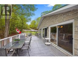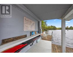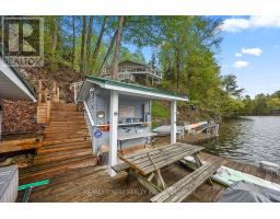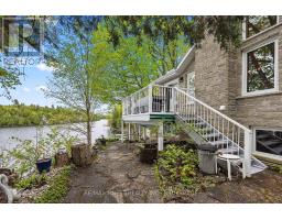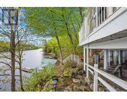 Just a short drive from downtown Kingston and a quick jaunt into Westport, nestled among more than 20 varieties of mature trees, on spring fed Buck Lake and in the Canadian Shield, this prestigious stone, raised bungalow is waiting for you to call home. The main floor boasts floor to ceiling windows and patio doors to the wrap around deck and clear, 180 degree view of Crown land including exclusive direct sight of the famous local landmark, Pulpit Island with the iconic "Devil's Pulpit". The lower level, which is a walk-out, has two additional bedrooms (that could be 3), a 4-piece bathroom, laundry closet, cozy rec room with propane fireplace and like upstairs, floor to ceiling windows and patio doors so that you never lost the view. You walk out into a three season space under the deck, here you'll spend many nights playing cards/games. Just a few steps from the main house is a beautiful 4 season guest house, complete with a single/double bunk bed, toilet, sink and outdoor shower. Take the stone steps down to the crystal clear and deep shoreline, pop open the cabana and host the best dock party around! There is plenty of room on the dock for all sorts of activities and the original solid boat house is ready, waiting to house your watercraft of choice. The period style of the building's living space (2,078 sq ft) is enhanced by artful, expansive and expensive landscaping of local stone and materials; patios, pathways, limestone steps, iron railings, border rock fences, 2 large rough cut board and batten pine sheds, with steel roofs to match the main house! Upgraded Septic system, Brand new Kohler-Generator, and Bunkhouse Cabin. This is a home that needs to be seen and experienced in person, so come see today! (id:28880)